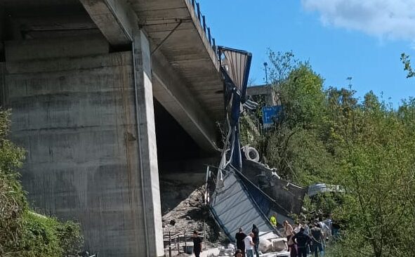 Secondo le prime ricostruzioni, il conducente avrebbe perso il controllo del camion andando a sbattere contro le barriere di sicurezza. Data la mole del tir, questo è riuscito a sfondare le protezioni del ponte ed è finito nel vuoto. Il camion risulta totalmente distrutto a causa del violento impatto al suolo. Gli altri veicoli che stavano transitando in quel momento sono riusciti a fermarsi appena prima di precipitare a loro volta.