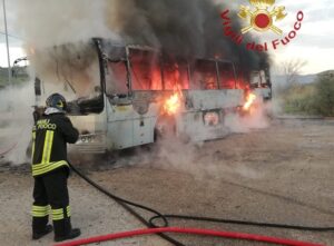 L’automezzo, parcheggiato nel piazzale del locale deposito della TUA, è stato gravemente danneggiato dalle fiamme, la cui origine è ancora da accertare.