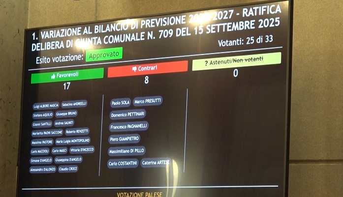 Pescara: il Consiglio Comunale ha approvato la variazione di bilancio di 2,6 milioni di euro con 17 voti favorevoli e 8 contrari. Non sono mancate polemiche e tensioni. L’Assessore al Bilancio Eugenio Seccia: “La maggioranza ha risposto in maniera compatta. Dal centro-sinistra opposizione non al sindaco Masci ma alla città. I T-Red erano 15 e resteranno 15 in 6 incroci”. Marco Presutti (centro-sinistra): “Da parte del Presidente del Consiglio comunale un vero e proprio eccesso di potere. Andremo dal Prefetto”.