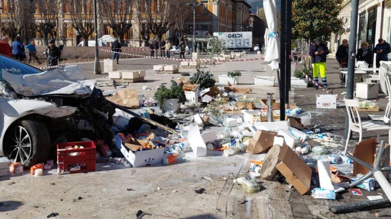Guidava sotto l’effetto di droga il 42enne albanese alla guida dell’auto che ieri ad Avezzano, a tutta velocità, ha travolto i tavoli del bar Gran Caffé e gli arredi in marmo della piazza. Come se non bastasse una volta sceso dall’auto il conducente è andato a tuffarsi nell’acqua gelida della fontana