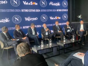Spazio al Chief Revenue Officer SSC Napoli, Tommaso Bianchini: “Il Napoli unisce, Abruzzo e Trentino, regioni apparentemente lontani, migliaia di persone che affollano i ritiri. Migliaia di persone che arrivano da ogni parte d’Italia ed anche d’Europa per festeggiare o rilanciarsi, il ritiro è un sogno, un’aspettativa. Due amichevoli a Dimaro, una selezione locale ed una di B o C, un villaggio per i tifosi sia di giorno che di sera in cui ci sono i nostri eventi con artisti e poi anche la squadra e lo staff. Oltre al super-store che già c’era l’anno scorso. Dal 25 al 10 agosto a Castel di Sangro, confermando lo store nel palazzetto. Non dovremmo annunciare niente, ma il 28 luglio esordiremo con l’Adama Demirspor, una partita tradizionale ormai, il 31 con una squadra francese, il 3 agosto col Girona che torna quindi a Castel di Sangro dopo un campionato eccezionale. Per una quarta stiamo selezionando l’avversario ed i biglietti usciranno con largo anticipo e stiamo selezionando anche la distribuzione televisiva”.