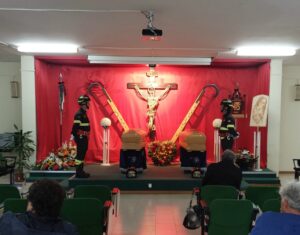 Dall’altro lato dei feretri, a destra dell’altare dal quale è l’arcivescovo Bruno Forte a spendere parole di commossa partecipazione, ci sono le due famiglie distrutte dal dolore e subito dietro tanti vigili del fuoco in divisa.