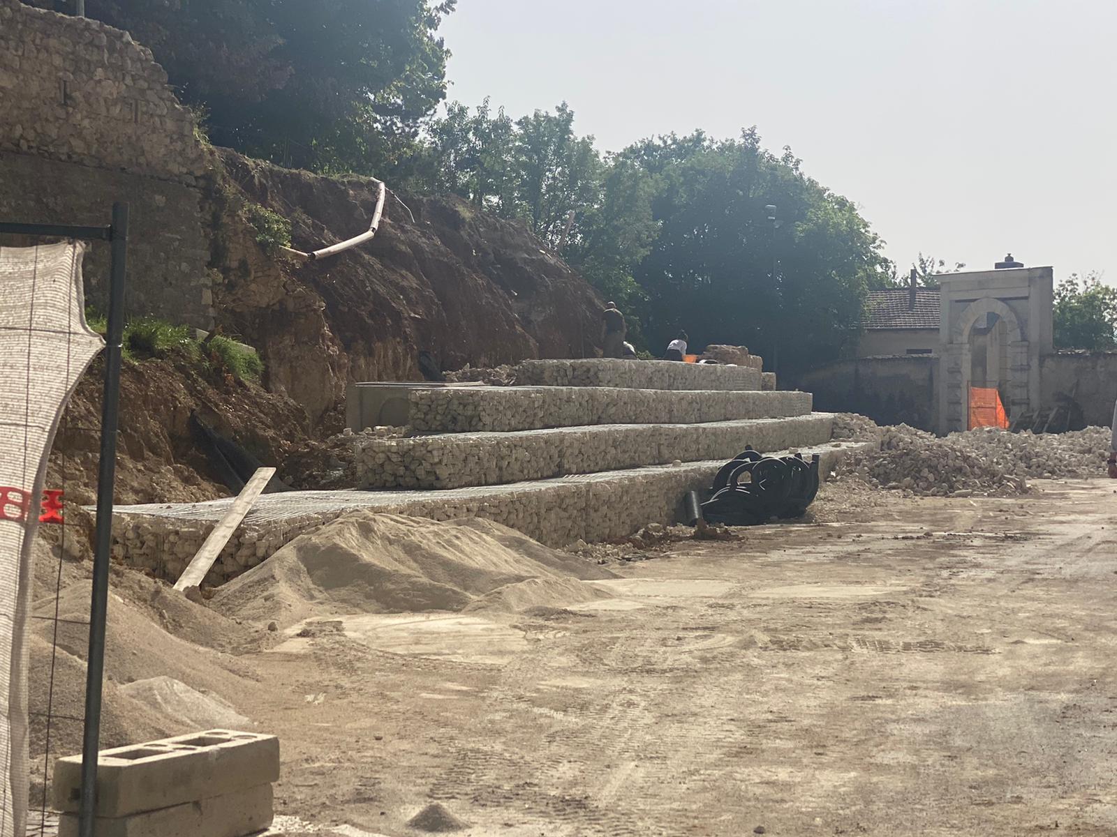 Da un lato in via Escrivà è operativo il cantiere che servirà a realizzare una sorta di gradinata con la sistemazione della scarpata che consentirà di seguire il giubileo aquilano in maniera più ordinata e già si vede la gradinata in pietra che si sta realizzando mentre sul prato della basilica a metà tappeto erboso ci sarà un maxi schermo. Si stanno effettuando degli scavi per montare una torre che sorreggerà lo schermo.