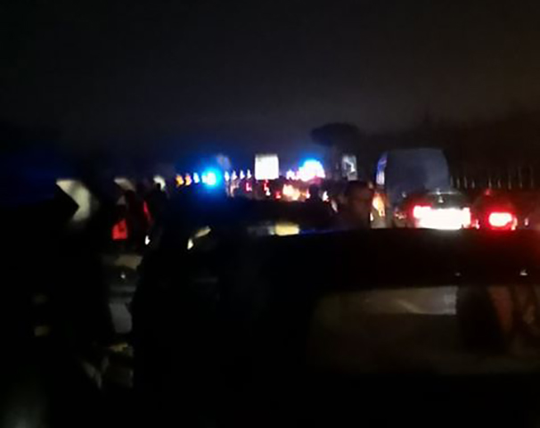 La statale è stata chiusa e il traffico deviato all’altezza di Tochiarolo fino alle 21.30 quando la circolazione è tornata regolare. Alla stessa altezza, sulla corsia in direzione Brindisi, invece, si è verificato un investimento ( non si tratta di un tifoso biancazzurro e al momento non si hanno notizie). Una persona è stata portata in ospedale. Con ogni probabilità si tratta di qualcuno che avrebbe attraversato la strada per verificare quanto stava accadendo sulla corsia opposta.