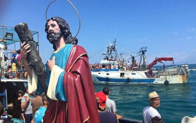 Sant’Andrea per tutta la giornata di ieri è stato pregato con canti e momenti di raccoglimento in parrocchia: lì a due passi dai palazzi del potere, ma soprattutto tra la sua gente. Il parroco ha tenuto aperte le porte della chiesa fino a notte fonda e le persone sono entrate anche solo per un momento di silenzio. Tanti i volti delle marinerie storiche della città ai piedi della statua del santo. E poi oggi sono stati proprio loro a portarlo prima in processione dalla chiesa al porto e poi ad issarlo sul peschereccio che con un tragitto breve e a tratti meno cerimonioso del solito ha ondeggiato sul suo mare, il mare di Pescara.