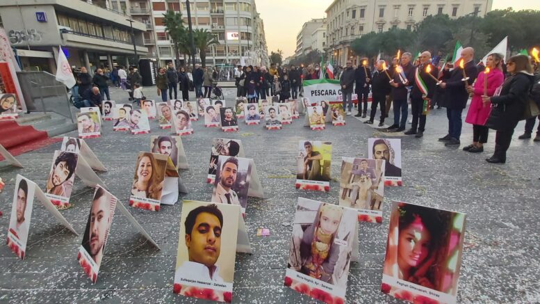 Ha mosso i primi passi intorno alle 17, da Piazza Sacro Cuore, la fiaccolata per portare tra la gente d’Abruzzo la voce resistente del popolo iraniano e delle sue coraggiose donne. A piazza Salotto una sorta di mostra con a terra le fotografie dei martiri della rivolta: la manifestazione è stata organizzata insieme dai Comuni di Pescara, Montesilvano e Spoltore