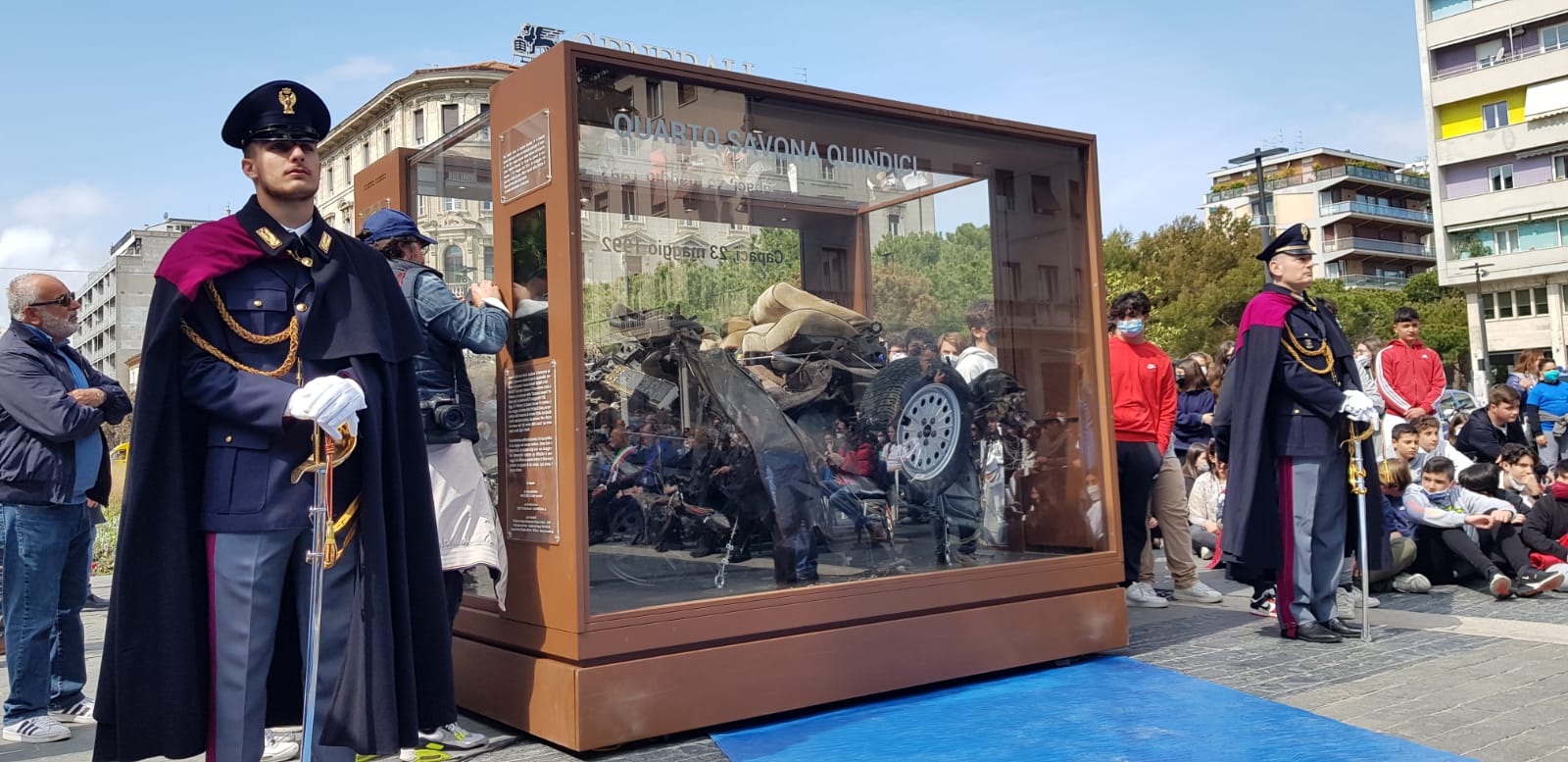 Tra le iniziative per il trentesimo anniversario delle stragi di Capaci e via D’Amelio, nell’ambito del Premio Paolo Borsellino in Abruzzo i resti della Fiat Croma “Quarto Savona 15” sulla quale il 23 maggio 1992 persero la vita gli agenti della scorta di Falcone. La teca contenente i resti sarà esposta a Pescara in piazza della Rinascita.