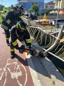 Sul posto, in Viale Primovere, anche la Polizia e la Municipale per i rilievi e soprattutto per interdire la zona coinvolta. Necessario l’utilizzo di una autogru per recuperare la dell’auto.