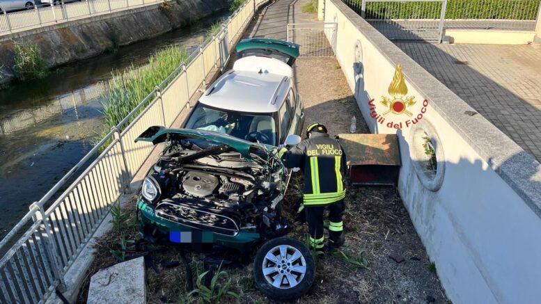Ha sfondato il muro e divelto la ringhiera in ferro volando sotto al ponte del Fosso Vallelunga la Mini recuperata, poco dopo le 5, da due squadre dei vigili del fuoco rimaste per ore sul luogo dell’incidente per mettere in sicurezza mezzo, ferito e ponte