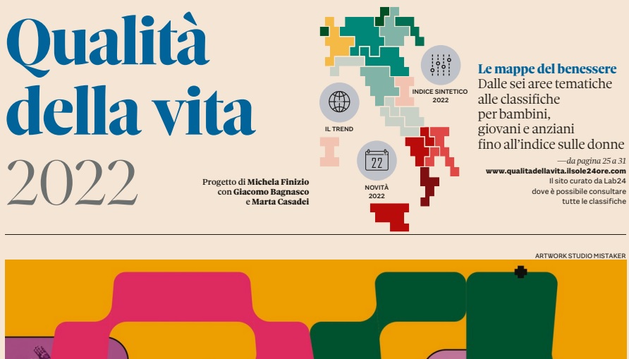 Un’edizione, quella di quest’anno, che dà ampio spazio alle ricadute sul territorio dei grandi shock 2022: guerra in Ucraina, caro-energia, inflazione. I 90 indicatori statistici alla base dell’indagine, di cui 40 aggiornati al 2022, presentano una serie di novità: due indicatori sull’inflazione; un pacchetto di indicatori su energia da fonti rinnovabili/riqualificazioni energetiche/consumi energetici; l’indice della partecipazione elettorale alle ultime elezioni politiche di settembre 2022; nove indici sintetici inclusi nell’indagine che aggregano più parametri (Qualità della vita di giovani, bambini e anziani, Qualità della vita delle donne, Ecosistema urbano, Indice della criminalità, Indice di sportività, Indice del clima, IcityRank sulle città digitali).