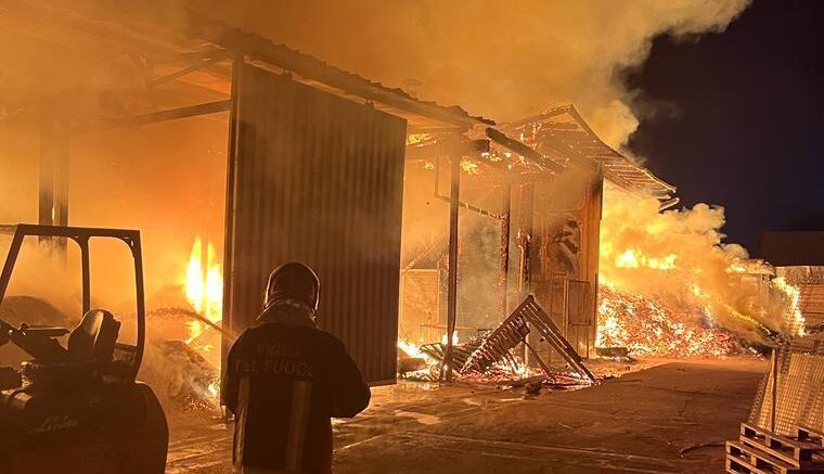 Grosso incendio nella notte nello stabilimento della Tecnopack a San Salvo. Le fiamme si sono propagate con facilità nell’azienda che produce, nella zona industriale di Piana Sant’Angelo, imballaggi industriali in legno