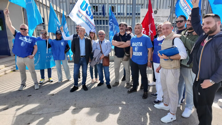 A Teramo sit in di protesta delle single sindacali davanti alla casa circondariale di Castrogno per denunciare la grave situazione di sovraffollamento e carenza di organico nel carcere