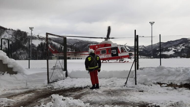 Una decisione quella presa dal sindaco anche su spinta del peggioramento delle condizioni meteo: col passare delle ore ci si è resi conto di come fosse impossibile liberare la provinciale e, quindi, mettere i 23 residenti nelle condizioni di recarsi altrove ad esempio da familiari o amici. Il sindaco ha, pertanto, ritenuto di dover chiedere, ottenendolo, l’intervento di due elicotteri dei vigili del fuoco per portare in salvo i residenti delle quattro frazioni. I mezzi sono partiti da Pescara. Fanno base al campo sportivo di Valle Castellana e da lì i cittadini vengono prima accompagnati in Comune e poi col sindaco stesso si sta valutando di volta in volta per quanti proseguire col trasferimento nella struttura alberghiera a Teramo.
