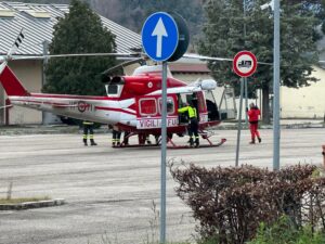 Nella foto l’arrivo a Teramo dell’elicottero di soccorso