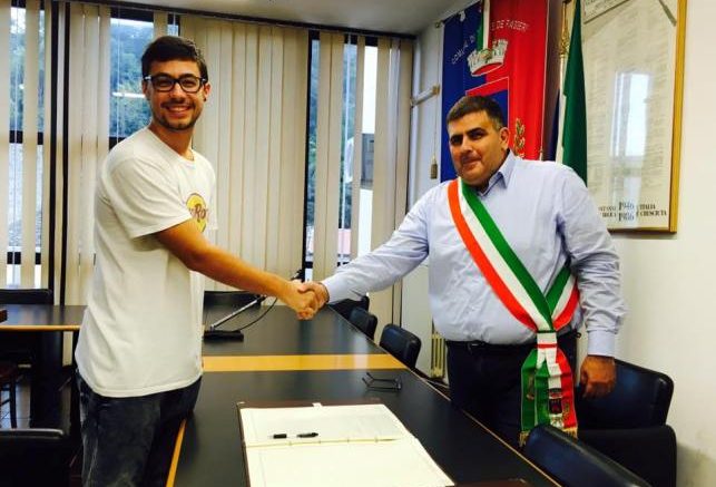 Cerimonia a Torre de’ Passeri per festeggiare i 18 anni e la cittadinanza italiana di Denis Stjepanovic, rifugiato con la famiglia in fuga dalla guerra in Bosnia