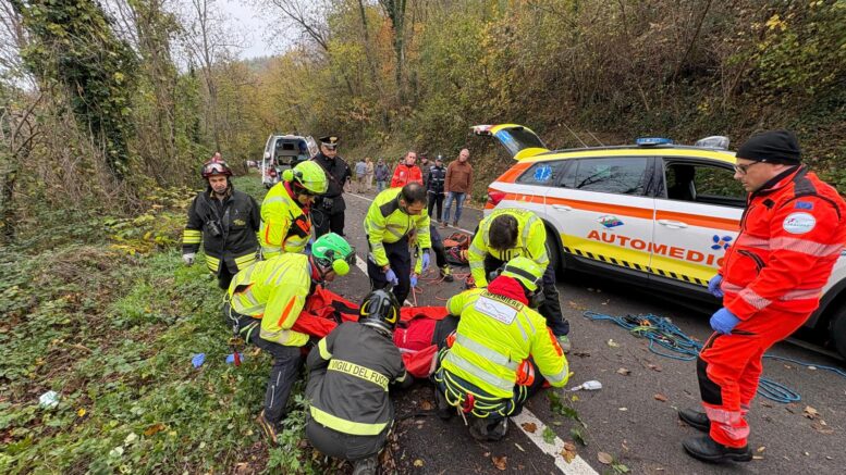 Nell’incidente è rimasto coinvolta una Toyota Yaris con a bordo il conducente 36enne. Per cause in corso di accertamento da parte dei Carabinieri di Montorio al Vomano, intervenuti sul posto per effettuare i rilievi dell’incidente, il veicolo è uscito di strada e dopo essere precipitato lungo il ripido pendio, si è arrestato appoggiandosi ad un albero. Il conducente è rimasto incastrato all’interno dell’abitacolo ed è stato estratto dai vigili del fuoco che hanno messo in sicurezza il mezzo incidentato ancorandolo con cavi metallici all’autopompa. Sul posto è intervenuto anche il personale sanitario dell’eliambulanza del 118 che ha soccorso l’infortunato, successivamente trasportato in ospedale di Teramo. Il mezzo incidentato è stato recuperato dai vigili del fuoco con l’ausilio di un trattore messo a disposizione da una persona del posto.