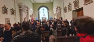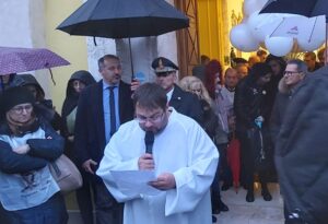 tromba. L’inizio della cerimonia religiosa è stato preceduto dalla fiaccolata che, si è tenuta all’esterno della chiesa di San Nicola Vescovo sotto una fitta pioggia.