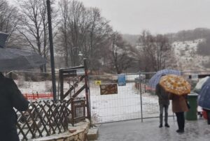 Le forze dell’ordine che presidiano la zona hanno spiegato che mancano le condizioni di sicurezza per salire fino alla zona dove si trova l’obelisco dell’hotel. Il pullman dei parenti delle vittime che si era fermato dopo il centro abitato di Farindola è stato fatto tornare indietro. La messa è stata officiata nella chiesa di San Nicola Vescovo da don Luca.
