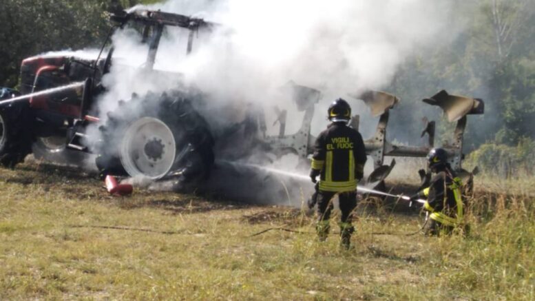 L’incendio è avvenuto in contrada Accattapane e ha riguardato un trattore gommato impegnato in lavori di aratura. Il mezzo agricolo è stato avvolto delle fiamme che il conducente del mezzo ha tentato di spegnere utilizzando alcuni estintori portatili, senza riuscirci. I vigili del fuoco hanno affrontato l’incendio con i getti degli idranti in dotazione spegnendolo in breve tempo ed evitando che potesse propagarsi alla vegetazione vicina.