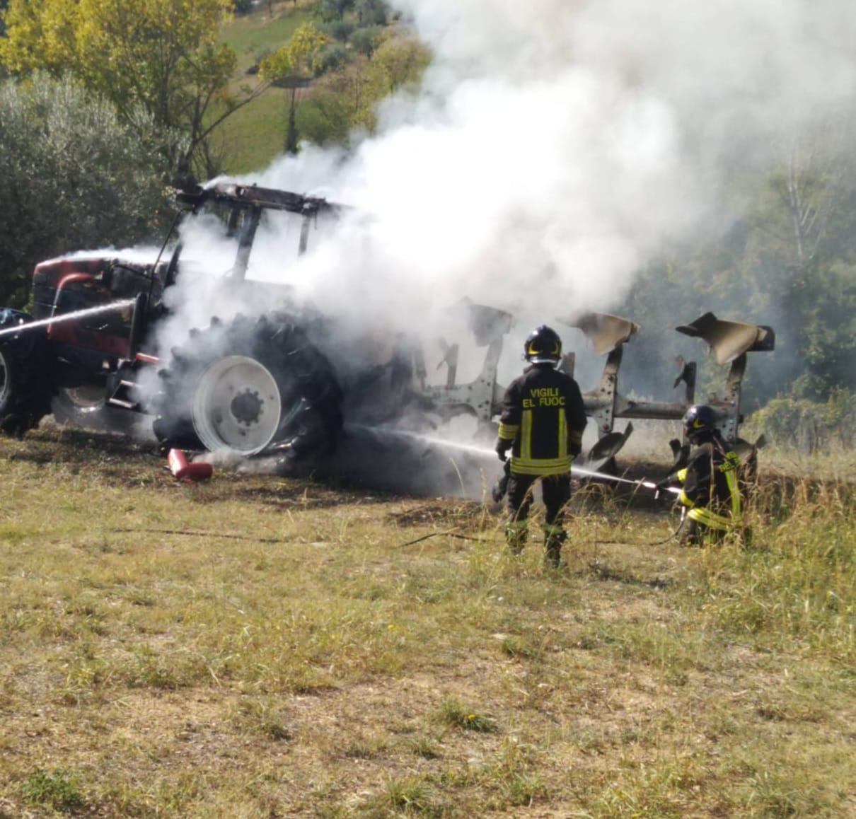 L’incendio è avvenuto in contrada Accattapane e ha riguardato un trattore gommato impegnato in lavori di aratura. Il mezzo agricolo è stato avvolto delle fiamme che il conducente del mezzo ha tentato di spegnere utilizzando alcuni estintori portatili, senza riuscirci. I vigili del fuoco hanno affrontato l’incendio con i getti degli idranti in dotazione spegnendolo in breve tempo ed evitando che potesse propagarsi alla vegetazione vicina.