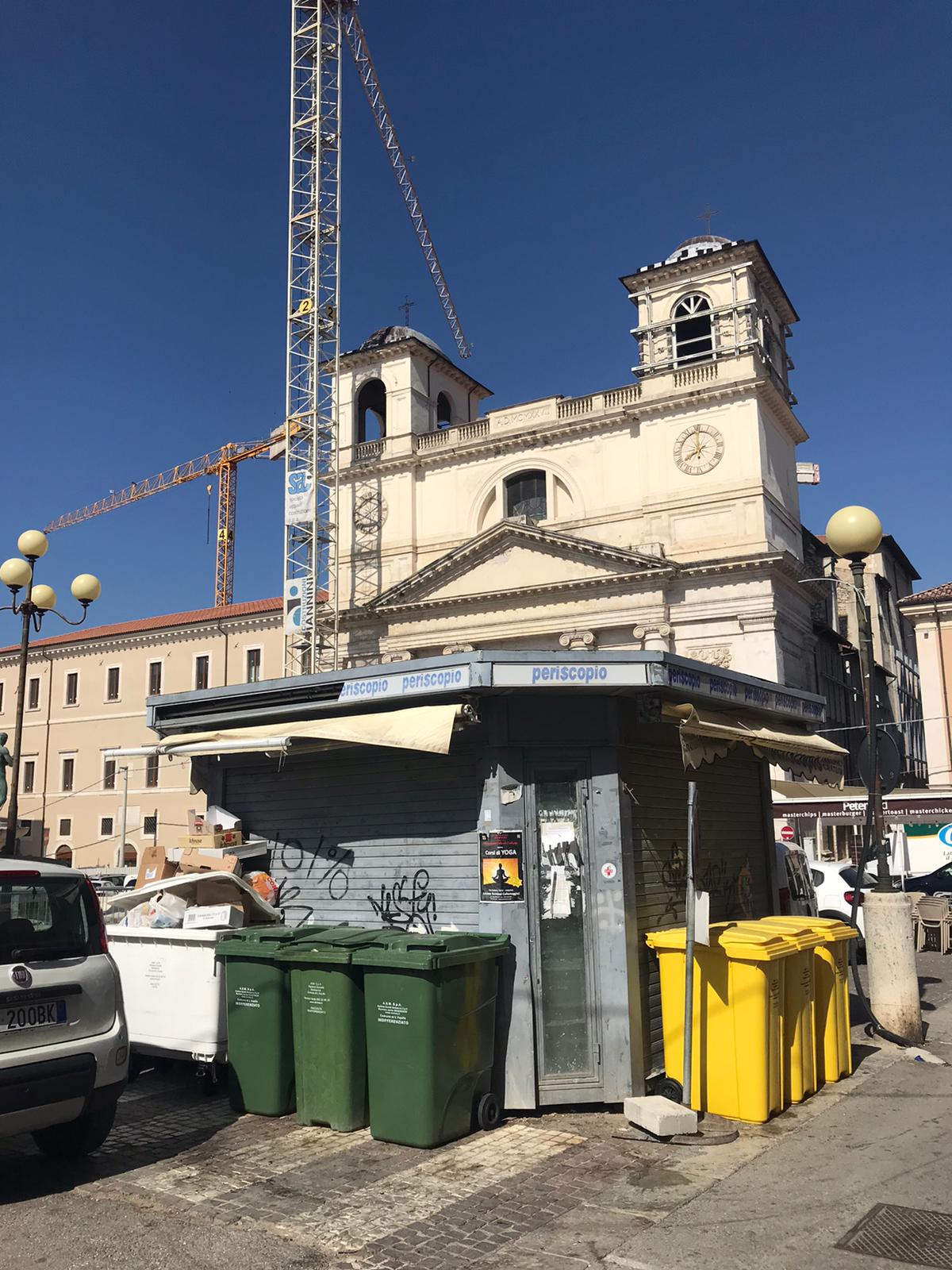 Arriva però a tal proposito la proposta, che è anche una effettiva necessità rilevata, dell’associazione L’Aquila Città di persone per realizzare un infopoint nuovo in Piazza Duomo all’edicola dismessa che ora è circondata dai cassonetti dell’immondizia.