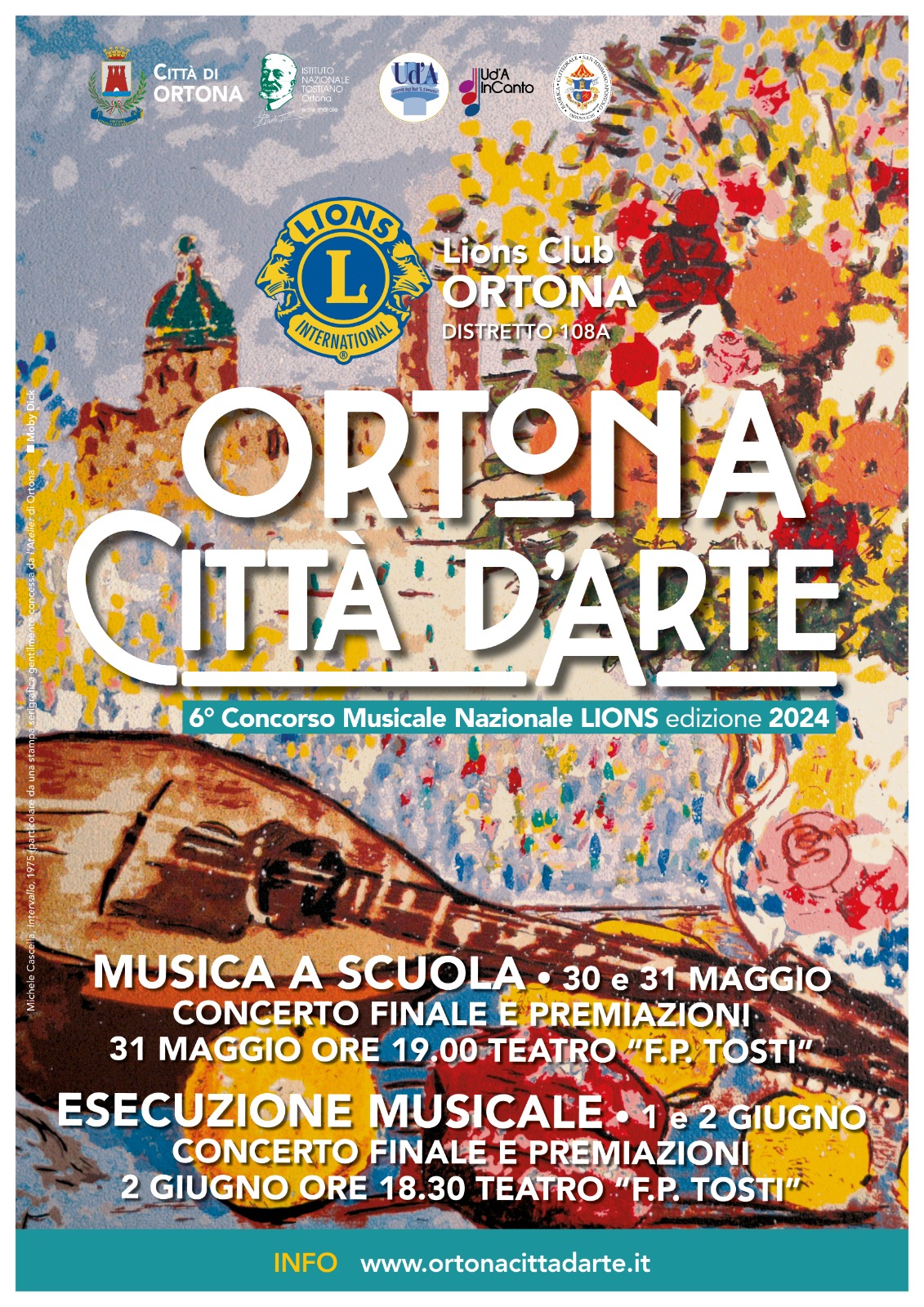 Il Lions Club di Ortona – Distretto 108 A organizza la sesta edizione del Concorso Musicale Nazionale Lions “Ortona, Città d’Arte”, con il patrocinio e la collaborazione diretta del Comune di Ortona, dell’istituto tostiano, dell’Università degli studi G. d’Annunzio di Chieti Pescara ed il suo prestigioso coro “UdA in Canto”.