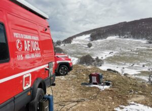 Sul posto stanno operando anche gli uomini dell’unità cinofila con il supporto dell’autofurgone UCL (Unità di Comando Avanzato) dei vigili del fuoco di Teramo e due elicotteri del Reparto Volo dei vigili del fuoco di Pescara e del Servizio di Emergenza 118.