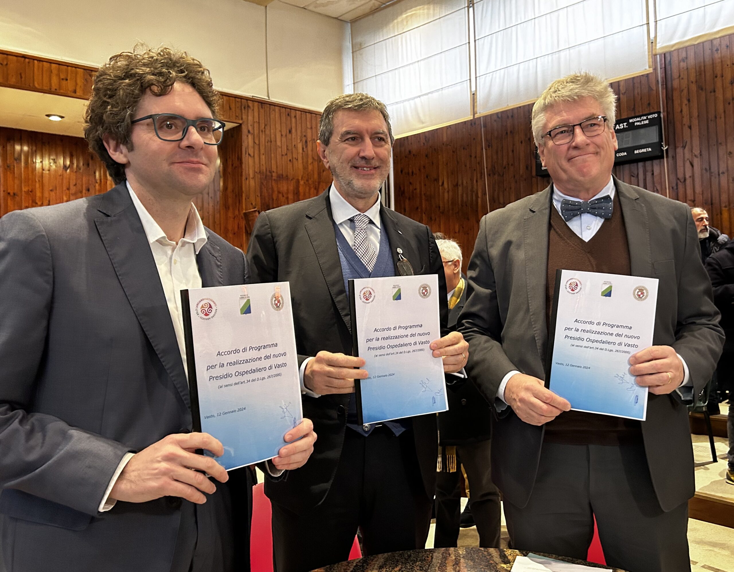 A sottoscrivere il documento sono stati il presidente della Giunta regionale, Marco Marsilio, il direttore generale della Asl, Thomas Schael, e il sindaco di Vasto, Francesco Menna.