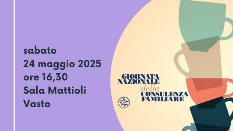 In occasione della Giornata Nazionale della Consulenza Familiare, istituita dall’AICCeF (Associazione Italiana Consulenti Coniugali e Familiari), sabato pomeriggio si terrà a Vasto l’evento “Un the per te”, incontro cordiale e informativo pensato per avvicinare la cittadinanza al mondo della Consulenza Familiare
