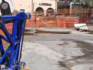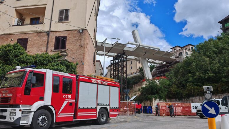 Sul cantiere, alle porte del centro storico, oltre agli operai ci sono vigili del fuoco, vigili urbani, polizia e carabinieri.