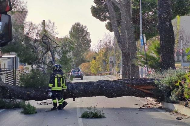 Vento fortissimo su tutta la costa adriatica abruzzese da ieri sera, con numerosi interventi dei vigili del fuoco per alberi e rami danneggiati. Rischio tragedia invece a Spoltore dove un grosso pino è crollato sulla strada