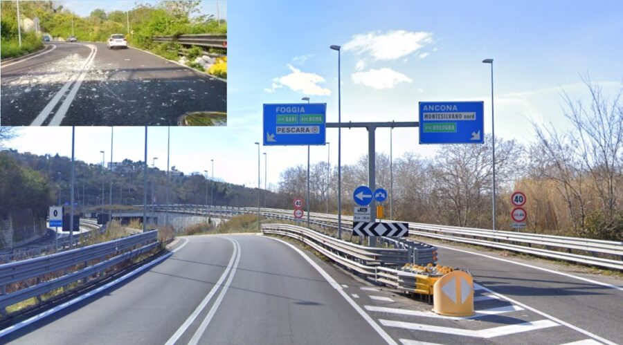 Una decina di blocchi in cemento hanno invaso la sede stradale della rampa di accesso della SS 714 che da Santa Filomena a Montesilvano si immette in direzione Pescara-Foggia nei pressi della galleria San Giovanni. I blocchi voluminosi hanno invaso tutta la sede stradale creando difficoltà agli automobilisti in transito che hanno dovuto fare molta attenzione per evitare l’impatto. Alcuni conducenti, facendo una manovra pericolosa, hanno preferito fare inversione ad U e tornare indietro. Il traffico, vista l’ora di punta, ha subito forti rallentamenti. Si è creata subito una coda di alcuni chilometri. La situazione è tornata alla normalità subito dopo la rimozione dei blocchi in cemento da parte dei tecnici dell’Anas.