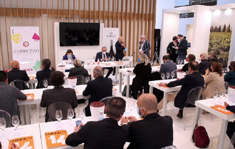 Alla presentazione del progetto, che si è tenuta nella sala degustazioni del Padiglione Abruzzo, hanno partecipato tra gli altri il vice presidente Emanuele Imprudente, il presidente del Consiglio regionale Lorenzo Sospiri, il direttore del Dipartimento Agricoltura, Elena Sico, e Luciano di Labio, presidente di Vin.Co. Il giornalista Andrea Zanfi, editore di Bubbles Italia, ha moderato il convegno. In occasione del convegno è stata consegnata una etichetta in onore del presidente emerito di Vin.Co, Carlo de Iure. “La Regione ha voluto sostenere un progetto innovativo di aggregazione della più importante filiera agroalimentare regionale per lanciare la bollicina d’Abruzzo – ha spiegato il vice presidente con delega all’agricoltura Emanuele Imprudente al fine di far nascere un polo produttivo che sarà in grado di intercettare e aprire nuovi mercati per una tipologia di vino in continua espansione e di cui l’Abruzzo potrà essere protagonista”.