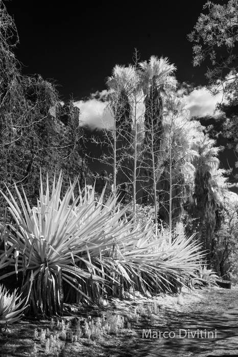 Gli scatti del maestro Marco Divitini si distinguono per la capacità dell’infrarossi di immortalare la bellezza “invisibile” della vegetazione, virando al bianco della clorofilla e andando così oltre ciò che i recettori umani consentono solitamente di individuare.