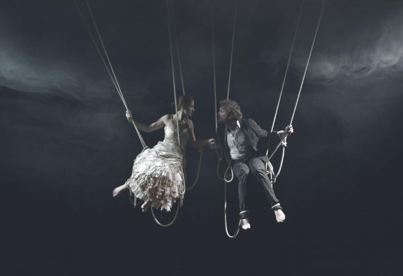 La scelta di rappresentare questo necessario e voluto distacco da Dio ha poi fatto nascere l’idea di utilizzare delle corde tese al cielo; ecco che Adamo ed Eva sono diventati allora nel mio immaginario marionette che scegliendo il libero arbitrio trovano sì la vita, ma anche la sofferenza e il sacrificio, come una qualsiasi coppia umana. La terra sulla quale Adamo ed Eva scendono, fuggendo dal Paradiso, quella meta tanto agognata, diventa anche la loro gabbia, il tappeto del circo in cui rifiutano di essere domati, il perimetro in cui si rincorrono sogni, liti, amore e violenza, altare tragico su cui viene rappresentata la perdita del sentimento amoroso”.