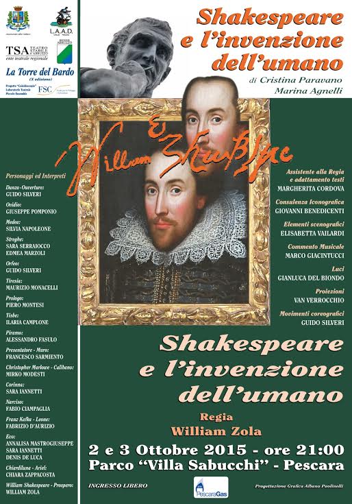 Pescara: Shakespeare e l’invenzione dell’Umano . il 2 e 3 ottobre a Villa Sabucchi di scena lo spettacolo di William Zola nell’ambito del progetto “La torre del Bardo”.