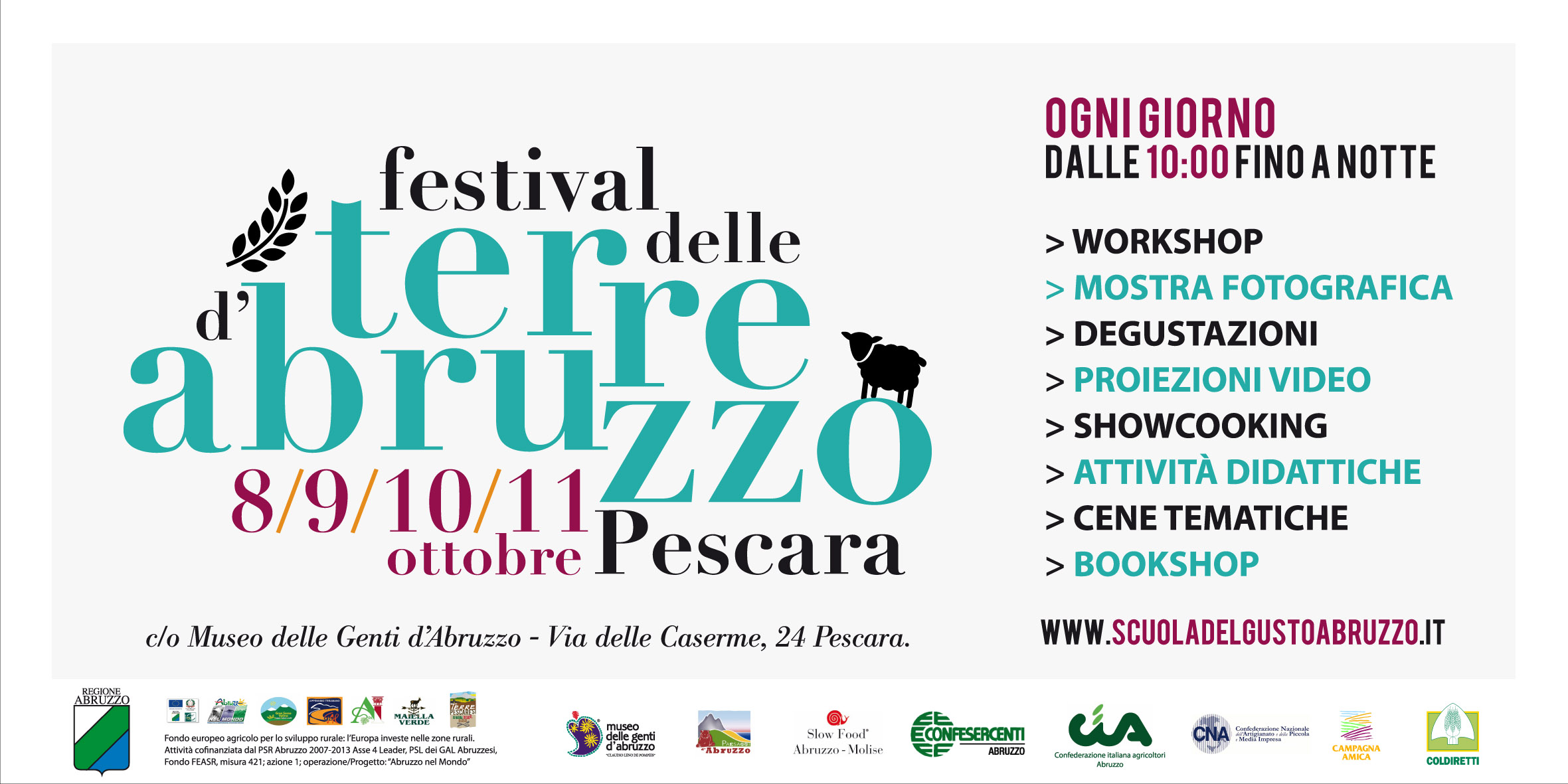 Primo Festival delle Terre d’Abruzzo. Al via da domani la grande vetrina dell’identita’ rurale delle aree interne della regione. L’iniziativa e’ ideata ed organizzata dai Gal abruzzesi con il sostegno della Regione e la collaborazione di associazioni.
