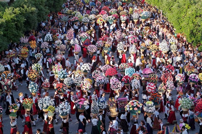 Le contrade del paese e del territorio limitrofo hanno il compito di organizzare, disponendo di circa mille figuranti, l’allestimento di carri e canestri con motivi floreali e primaverili. I carri sfilano la domenica precedente il 23 maggio e partecipano al Palio dei Banderesi, la gara in cui vince l’opera più bella.
