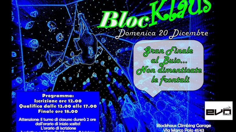 Tutto questo e molto altro ancora si potrà vivere domenica 20 dicembre presso la palestra “Blockhaus Clinbing Garage” a Pescara, Via Marco Polo 41/43 dove a partire dalle ore 13 e sino alle ore 17,00 decine di atleti, o per meglio dire boulder come vengono definiti tecnicamente, provenienti da tutta la regione daranno vita ad una spettacolare manifestazione di arrampicata sportiva. Un popolo in costante crescita quello degli arrampicatori sportivi che sfidando le leggi gravitazionali riescono a compiere gesti atletici unici ed arrampicate mozzafiato il tutto condito da tanta adrenalina, basti pensare che questi atleti si arrampicano a mani nude e senza le cime di sicurezza. Sotto la parete ovviamente alti speciali tappeti di protezione, i crash pad, che evitano qualsiasi contusione o infortunio. La specialità che si pratica è il bouldering, dall’inglese boulder (macigno), un’arrampicata senza corda che può arrivare ad un’altezza massima di circa quattro metri scalando appunto i macigni, anche se in questo caso ci si è arrampicati su semplici muri artificiali.