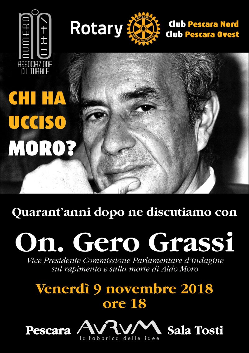 “Non parlerà di politica ma di fatti, di circostanze, di misteri irrisolti che ancora oggi velano la verità su uno degli intrighi più inquietanti della storia del Novecento italiano. – si legge nella nota del presidente dell’associazione Numero Zero, Carmine Ciofani – Un vero e proprio giallo, raccontato nei dettagli meno noti dall’onorevole Grassi. Per l’associazione Numero Zero e per il Rotary Club si tratta anche del primo di diversi appuntamenti culturali che accompagneranno la città alla seconda edizione di “Pescara a Luci Gialle”, il festival dedicato alla letteratura del brivido in programma nel mese di maggio 2019″.