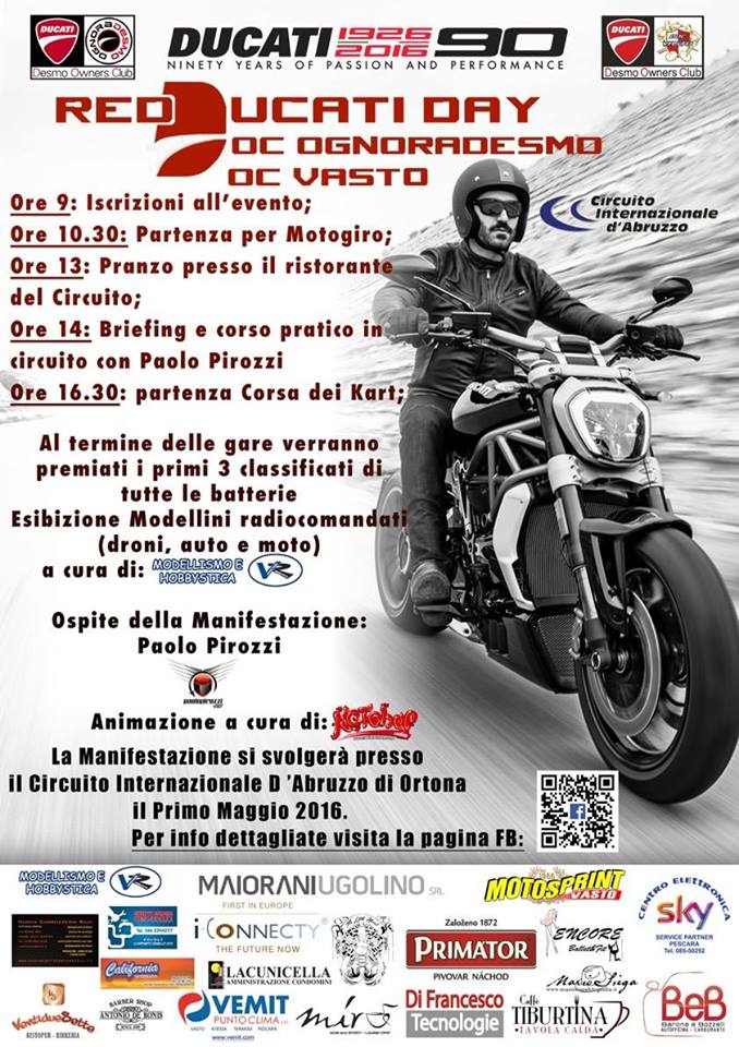 Ci sarà la possibilità di guidare in pista con il “ducatista” più veloce del mondo, Paolo Pirozzi. Prevista anche una corsa di kart. Al termine ci saranno la premiazione e l’esibizione di modellini telecomandati, tra droni, moto e auto. Per tutte le informazioni c’è la Pagina Facebook Red Ducaty Day. Primo maggio a Ortona all’insegna delle moto Ducati in una iniziativa dedicata a tutti gli appassionati di due ruote.