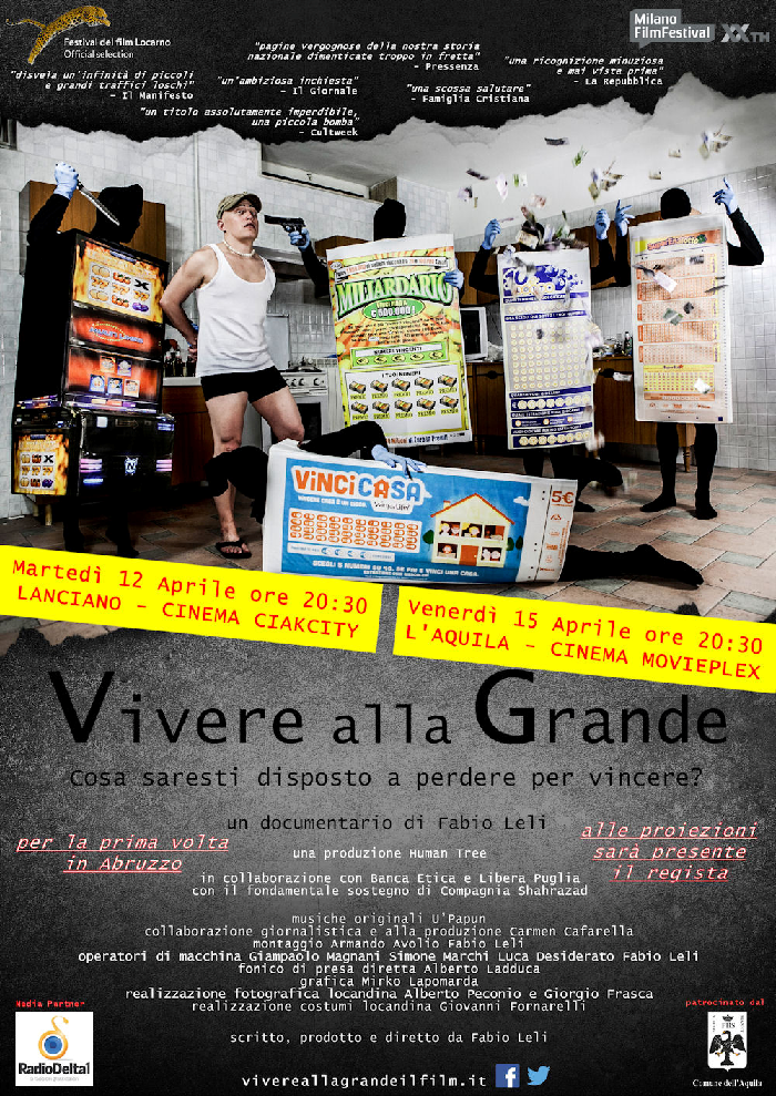 Gioco d’azzardo e terremoto, per la prima volta in Abruzzo il film “Vivere alla Grande” che sarà proiettato il 12 a Lanciano e il 15 aprile a L’Aquila.
