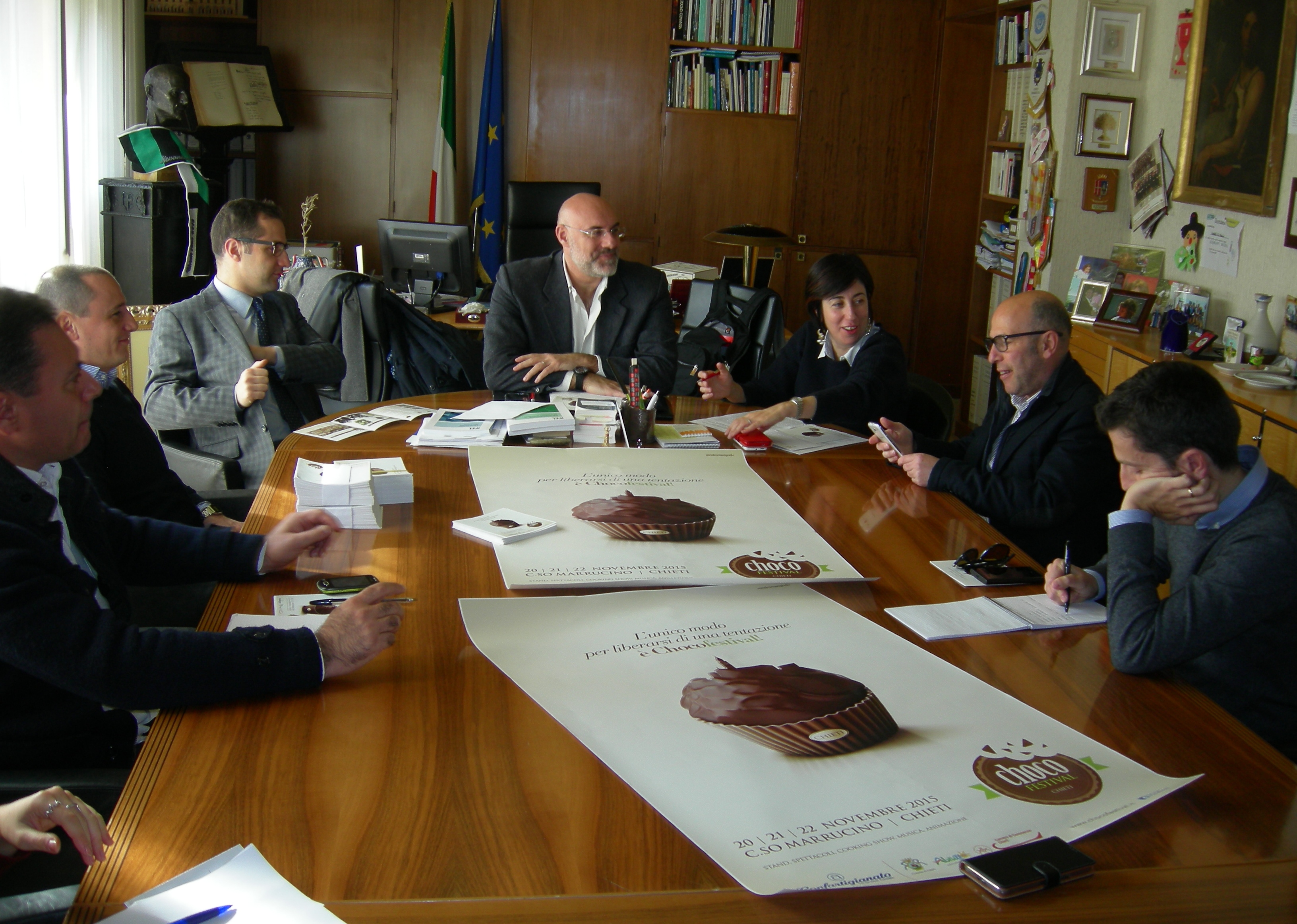 Il Sindaco, Umberto Di Primio, con l’Assessore alle Attività Produttive, Carla Di Biase, il Direttore Provinciale ed il Vice Direttore di Confartigianato, Daniele Giangiulli e Claudio Di Marzio, hanno presentato, questa mattina, nel corso di una Conferenza Stampa, la settima edizione di Chocofestival che tornerà a svolgersi nel centro storico di Chieti nei giorni 20, 21 e 22 novembre 2015, grazie all’organizzazione di Confartigianato Imprese Chieti, il contributo del Comune di Chieti, della Camera di Commercio di Chieti e della Regione Abruzzo.