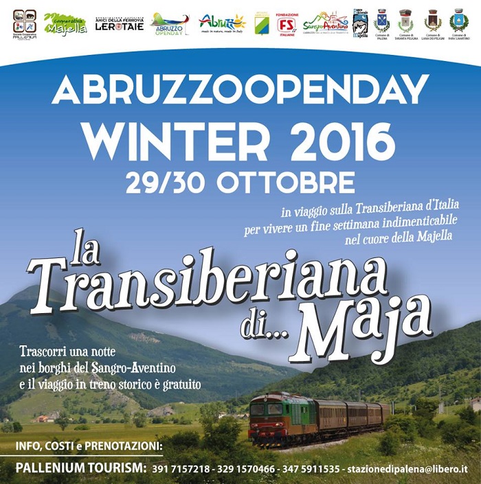 Partendo con l’affascinante treno d’epoca sulla storica ferrovia che da Sulmona valica l’Appennino tra paesaggi mozzafiato e boschi dalle accese tinte autunnali, per vivere cinque diverse esperienze dedicate alla natura, alla fauna protetta, all’arte nei borghi, alla spiritualità e all’enogastronomia. Si chiamerà la “Transiberiana di…Maja”: l’antica tratta ferroviaria, oggi percorsa dai treni storici e soprannominata affettuosamente “Transiberiana d’Italia” per via del suo percorso di quota su altipiani spesso ghiacciati o completamente innevati per ben due stagioni l’anno, dedica interamente la due giorni alla della “Dea Maja”, tra leggende, storie ed antiche usanze che hanno come protagonista la Majella, montagna madre degli abruzzesi. Tante le località toccate dal tour: Palena, Lama dei Peligni, Taranta Peligna, Fara San Martino, ciascuna con le proprie bellezze da mostrare ai visitatori che parteciperanno. Tariffe scontate per adulti e gratuità per bambini fino a 12 anni, l’iniziativa è promossa dalla cooperativa Pallenium Tourism, con il patrocinio dei comuni interessati e in collaborazione con le attività locali.