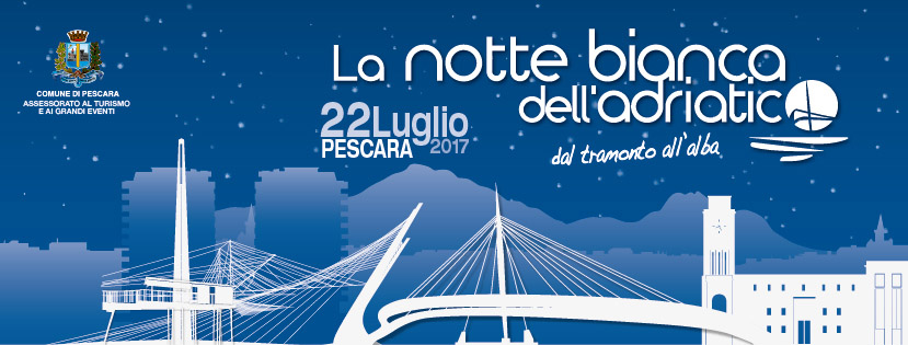 La data è il 22 luglio, ma il programma è al momento ancora “top secret”, torna la Notte Bianca dell’Adriatico, organizzata dal Comune di Pescara e in particolare dall’assessorato al turismo e ai gradi eventi di Giacomo Cuzzi. La riviera cittadina sarà trasformata in una grande piazza del divertimento, dal tramonto all’alba, musica, shopping, sport, food, eventi, animazione, concerti. Dopo la giovane Karima, Raf, Fargetta, Michele Placido, Enrico Ruggeri, Tonino Carotone, Marco Papa, degli anni scorsi, si attendono i nomi dell’evento dell’estate 2017. Per il programma e i prossimi aggiornamenti, si può consultare la Pagina Facebook La Notte Bianca dell’Adriatico.