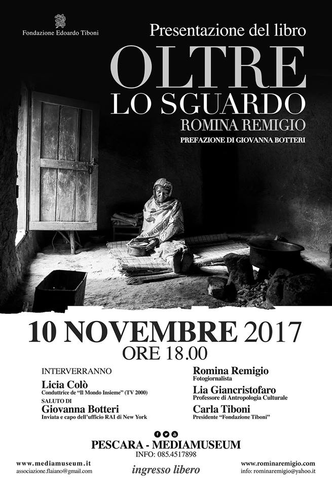 Venerdì 10 novembre alle ore 18,00 al Mediamuseum di Pescara sarà presentato il libro “Oltre lo sguardo” della fotoreporter e giornalista Romina Remigio.