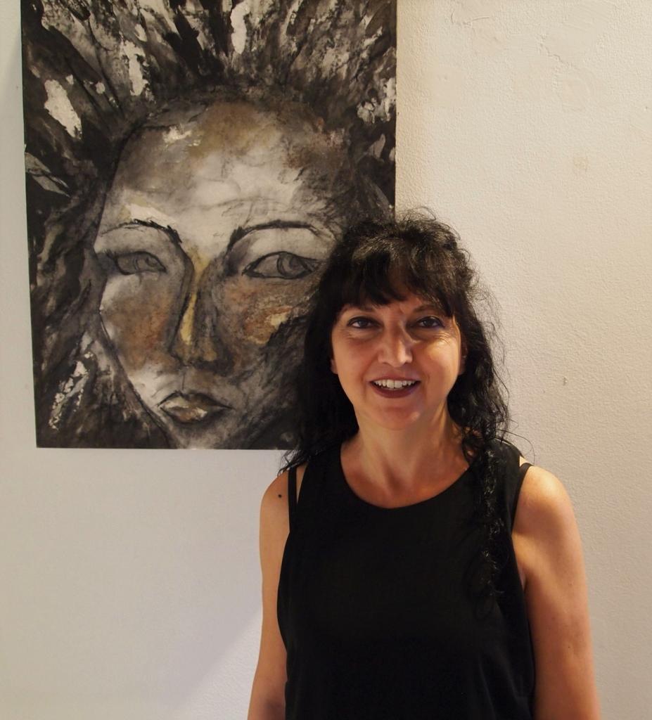 Tra volti di terracotta isolati in bolle di rete e un filo turchese si dipana una strada verso la consapevolezza, auspicio per una nuova umanità, sottotitolo della mostra che si oppone alla violenza della guerra ed alla distruzione della natura.