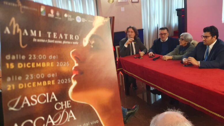 La sesta edizione della rassegna “Amami Teatro – In scena e fuori scena, giorno e notte”, con ingresso gratuito, è in programma dalle ore 23,00 del 15 dicembre alle ore 23,00 del 21 dicembre.