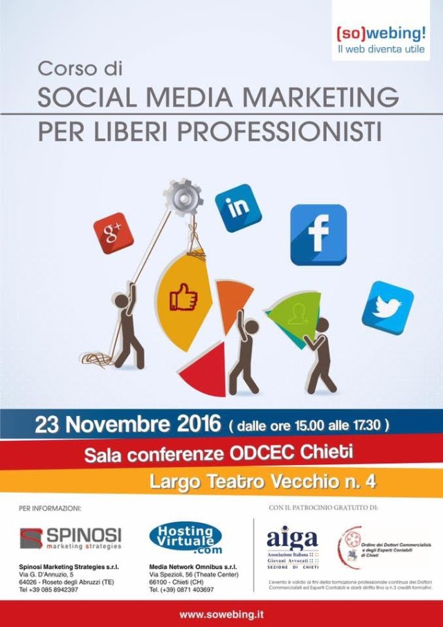 Chieti – Corso per avvocati e commercialisti. Si parlerà di Social media Marketing oggi pomeriggio.