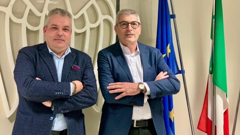 Ad affiancarlo per il prossimo quadriennio saranno il Vice Presidente Valentino D’Ambrosio (in foto insieme a Iocco) responsabile delle risorse umane di APTAR ITALIA S.p.A. – San Giovanni Teatino (CH) e Manoppello (PE) e nove consiglieri in rappresentanza di altrettante importanti realtà produttive delle tre province: Angelo Novarino di BAOMARC AUTOMOTIVE SOLUTIONS S.p.A. – con sedi ad Atessa e Lanciano (CH) , Andrea Gagliardi di DENSO MANUFACTURING ITALIA S.p.A. – San Salvo (CH), Luciano Ciarcelluti di LFA S.R.L. – Loreto Aprutino (PE), Paolo Zaccaria di ILMET S.R.L. – San Salvo (CH), Domenico Melchiorre di TAIM S.R.L. – Atessa (CH), Enzo Di Serafino di FRIGOMECCANICA S.R.L. – Mosciano Sant’Angelo (TE), Roberto Adorante di FGA S.R.L. – Fossacesia (CH) e Atessa (CH), Camillo Volpe di ISOMEC S.R.L. – Chieti.
